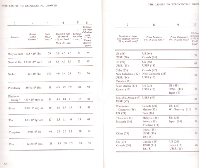 Helm is referring to hearsay about Table 4 in the book (attached below is the second half of the table showing the resources ‘m’ through ‘z’: click for larger image), which is the only place in the book that you will find concrete figures attached to particular non renewable resources. Now what this table is not showing is a list of predictions. What it does show is a series of ‘what if’ mathematical calculations.