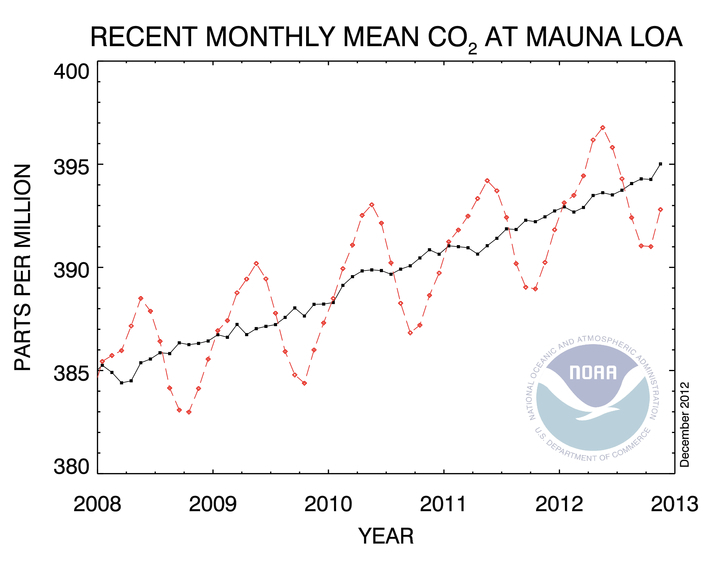 - December 2012 = 394.39 ppm, +2.60 ppm year-on-year