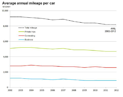 And annually each car is driven for an average of 8,000 miles, which translates into 22 miles per day (click for larger image; also remember we are smoothing out weekends and holidays).