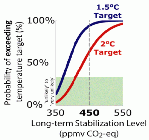 In the previous post we also noted that the international community has decided that 450 parts per million of CO2 equivalent (450 CO2-eq) is the level at which we are likely to get 2 degrees of warming. But how likely is likely?