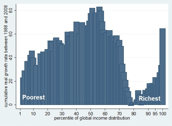 But below them lie a mass of Chinese and Indians who have done very well out of global capitalism. We may want to highlight downtrodden textile workers in Bangladesh or displaced farmers in Ethiopia, but they are a minority. In Milanovic’s words (here):